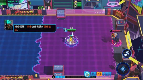 3、当玩家与对手相遇时,点击右下角的攻击按钮,即可发起射击。
