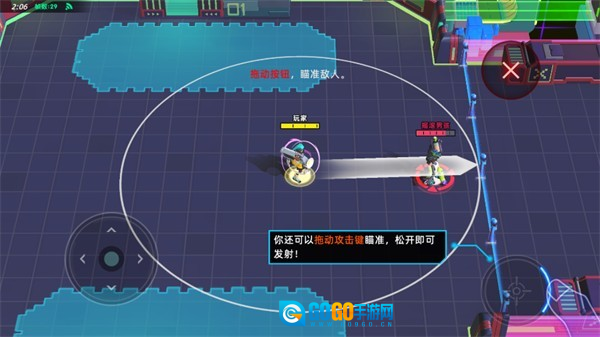 4、玩家也能够通过拖动攻击键来完成瞄准操作,松开该按键即可触发攻击发射。