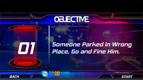 4、玩家在进入关卡前还可以查看本关的目标,像第一关就要求玩家抓捕违规停车的驾驶员;