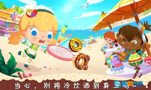 1、这款游戏以海滨甜品店作为背景,画面呈现出清新明亮的风格,椰树、沙滩与彩色糖霜相互搭配,一同营造出了一种能够让人放松、获得治愈感的度假氛围。