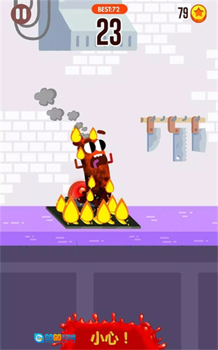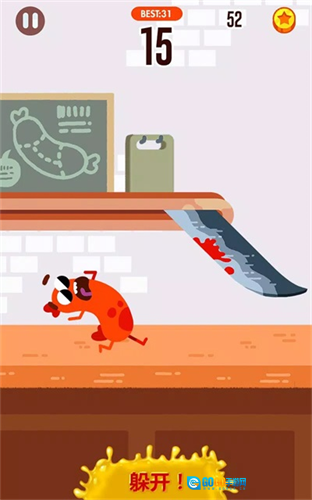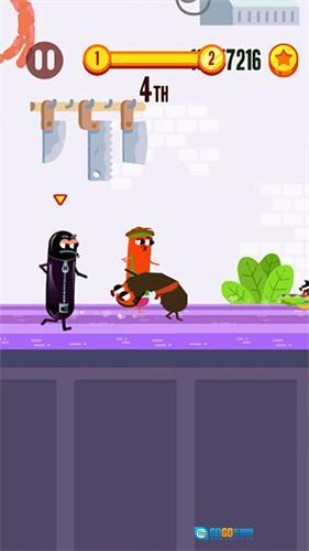 2、玩家需操控香肠收集途中的金币,同时要留意避开关卡里的各类机关,以免导致挑战失败。