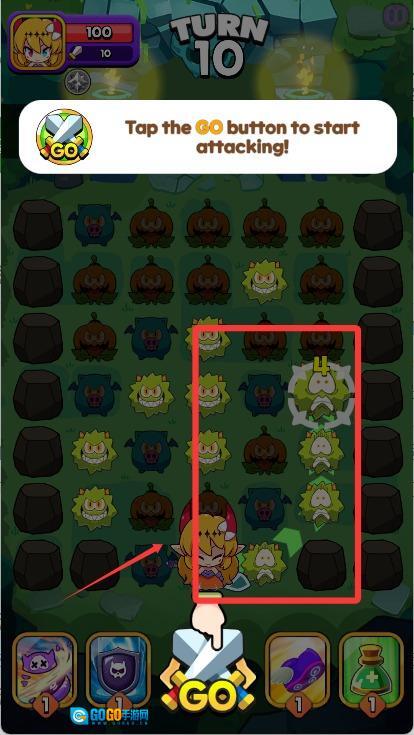进入游戏后,先点击相同的目标,接着点击“go”按钮,就能消灭怪物了。
