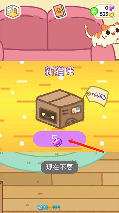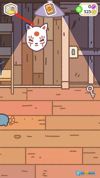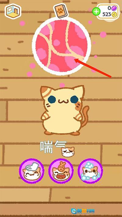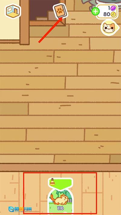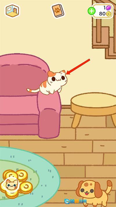 接下来,点击上方的【圆球】图标,小猫就会出去“偷”东西了。