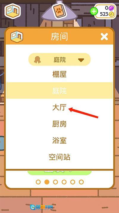进入房间界面,里面包含棚屋、庭院、大厅、厨房、浴室、空间站等场景,下面就以【大厅】来举例说明;