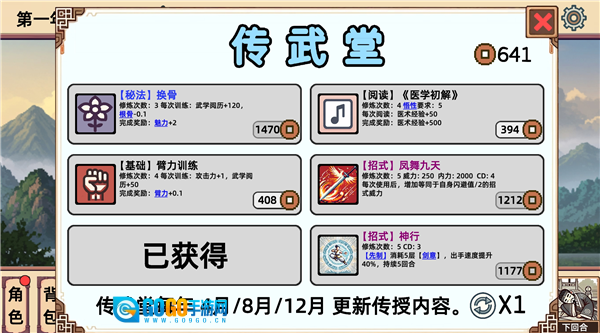 7、玩家可前往【传武堂】用铜钱购买技能。