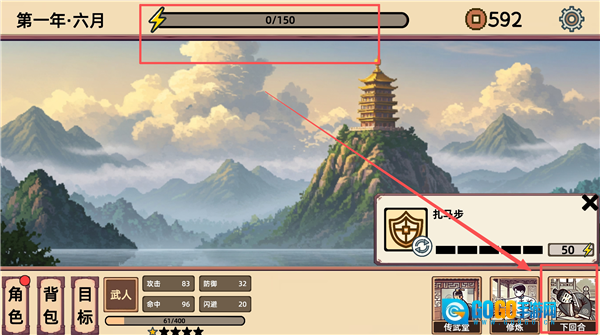 8、当精力耗尽时,点击【下回合】。