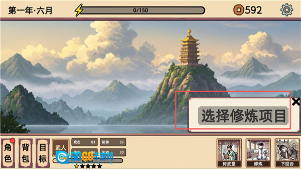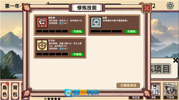 3、玩家在每个回合都能进行武学修炼,只需点击【选择修炼项目】即可。