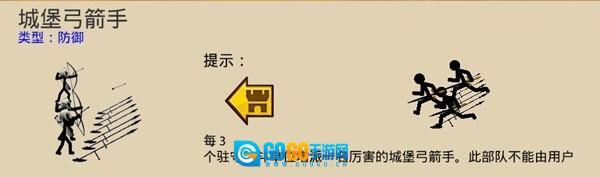 城堡弓箭手:当玩家点击启动城堡防御机制后,该单位便会开始运作,且其行动完全不受玩家操控。