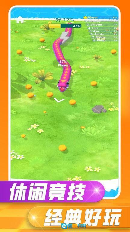 3. 支持与各类玩家开启5分钟快节奏对战,缩圈机制将蛇群推向最终对决,单局随时能加入,无任何参与压力。