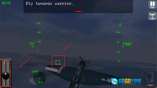 2、按照关卡给出的提示,达成飞机降落的相关要求,左边的是油门,右边的是俯仰角度。