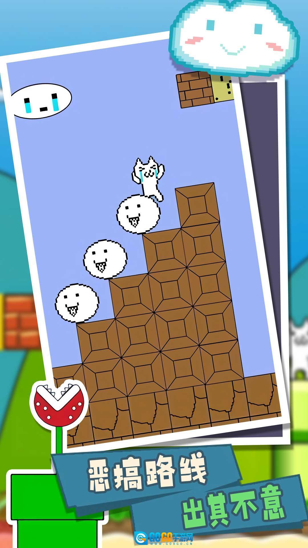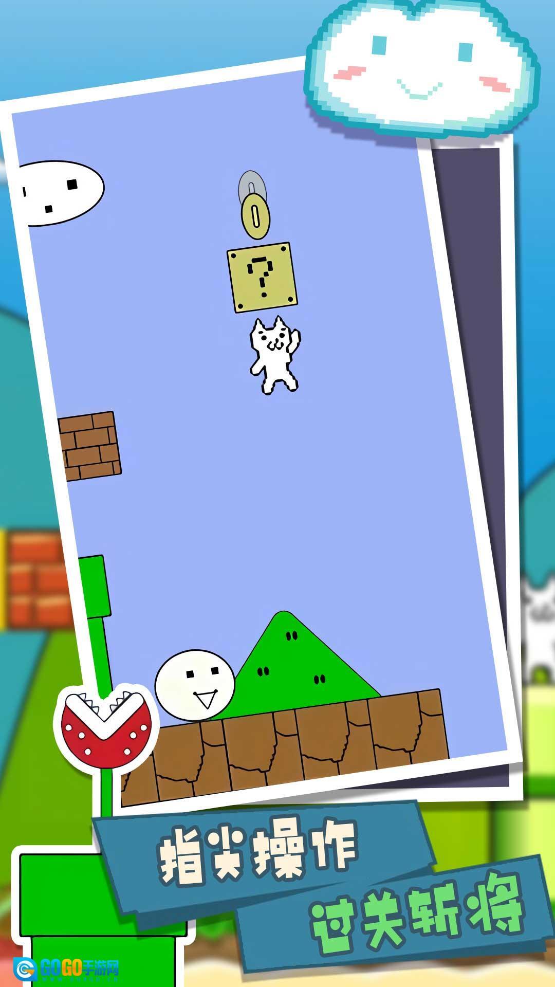 1、操控猫咪在关卡里跳跃前进,关卡中设置了砖块、食人花等多种障碍,经典元素一样都不少。