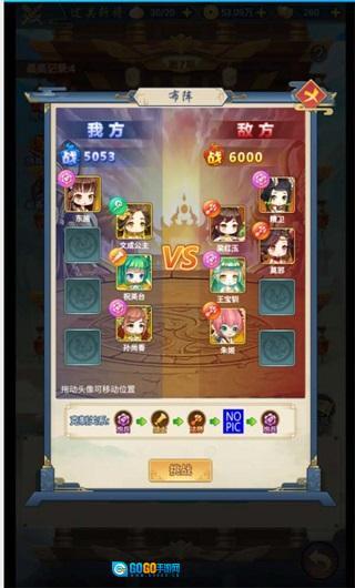将不同武将的属性按克制关系拖动头像进行布阵。