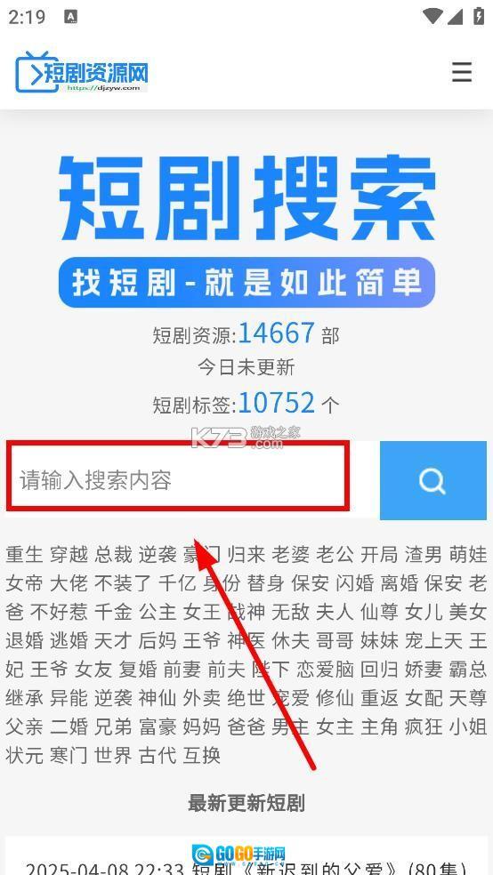 1、在本站软件,在搜索框内搜索喜欢的短剧