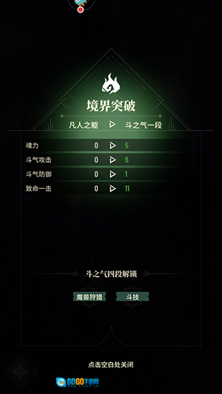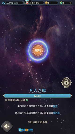 5、修行后点击凡人之躯即可突破境界
