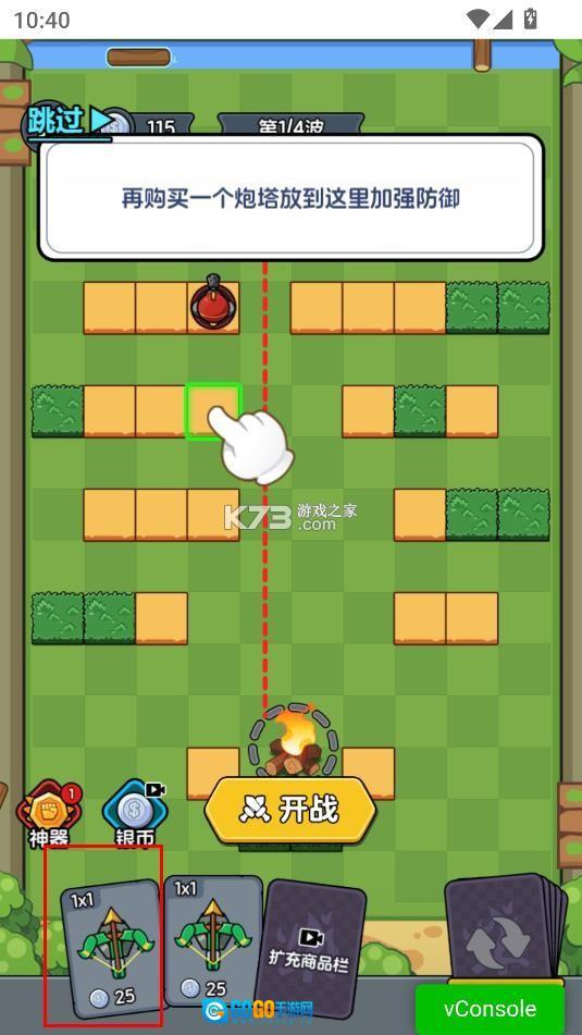 可以购买一个炮塔放在绿色方框里攻击怪物