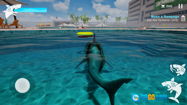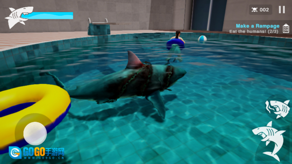 5、玩家需操纵鲨鱼撕咬游戏内的人类;