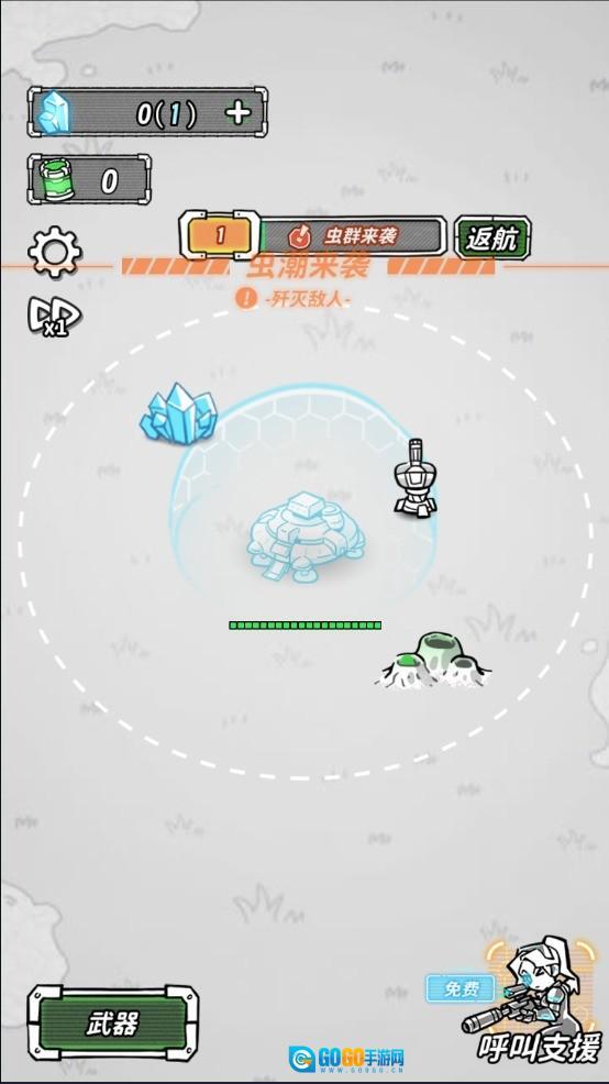 5、防御塔具备自动攻击能力,虚线标识出它的攻击范围,当虫潮涌来时,需要全力抵御敌人的进攻。
