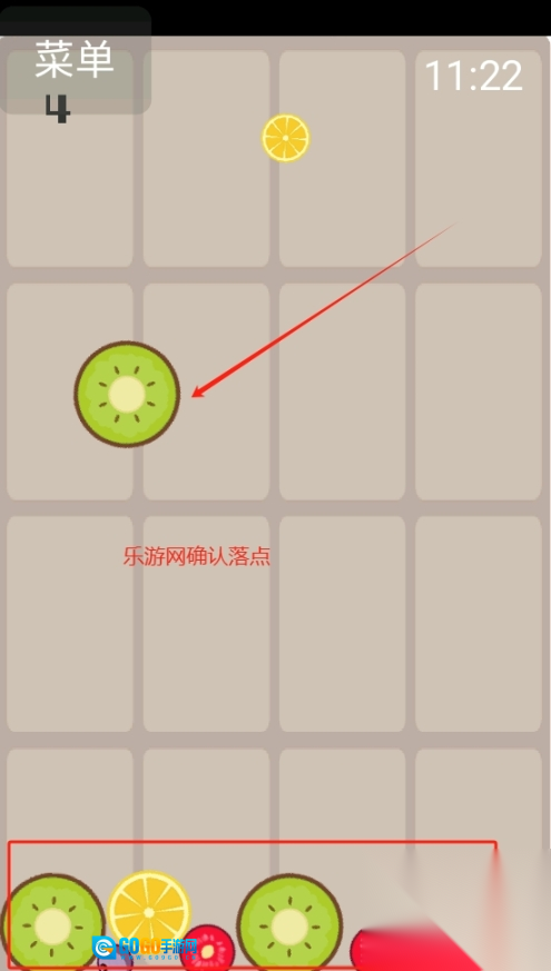 2、水果的初始落点默认在中间位置,若想调整它的方向,可依据实际游戏里底部水果的位置进行点击操作来实现。