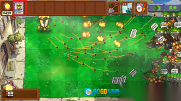 要是我能变得更厉害就好了,瞧见院子里的机枪射手,对,就是这样!机枪樱桃炸弹才刚出现,就遇上了一场激烈的战斗,一颗颗樱桃像雨点似的朝僵尸射过去。