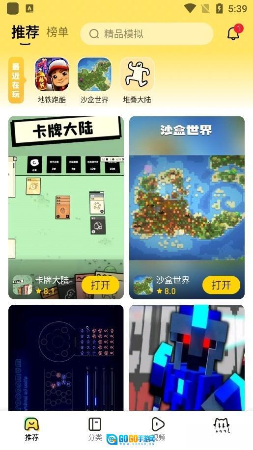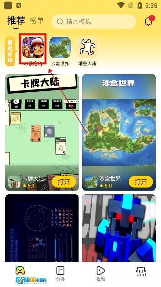 退出游戏,返回首页,会出现最近在玩游戏列表