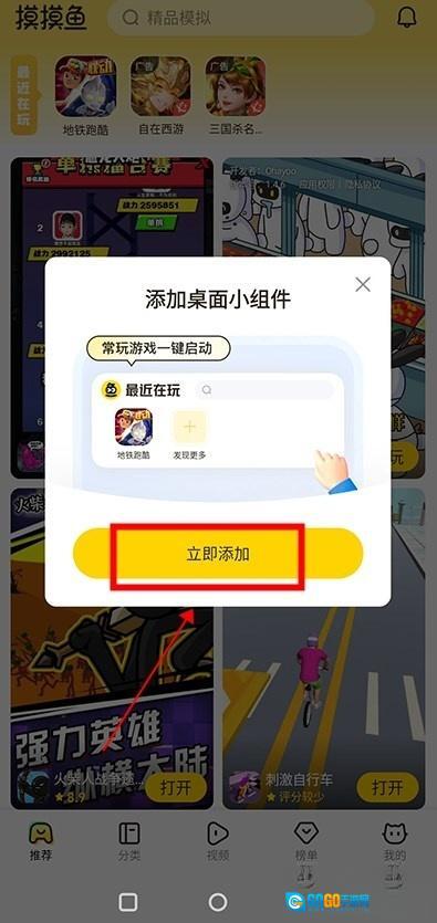 重启摸摸鱼后,会弹出推荐添加桌面小组件的会话框,点击“立即添加”即可。