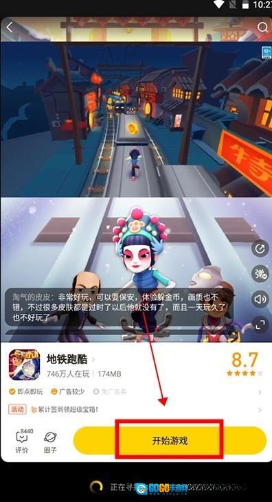 打开摸摸鱼应用,找到你想玩的游戏——可以直接搜索,也可以从推荐里选,比如地铁跑酷,然后点击“开始游戏”按钮就能玩了。