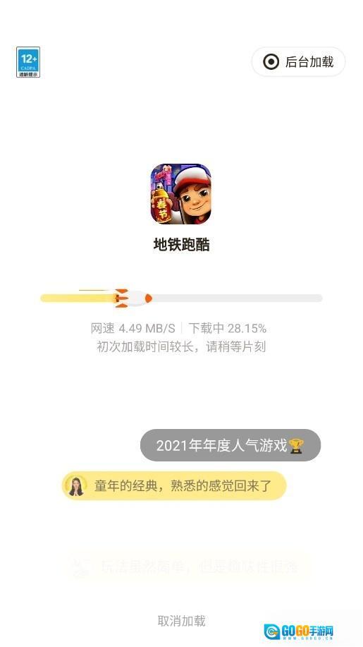摸摸鱼甚至取消了“”的叫法,旗下所有产品都统一标注“打开”二字,以此在用户心理层面构建“即点即玩”的小游戏认知。不过实际随机点开一款名为《死神VS火影绊》的产品时,任务栏依旧显示需要加载百余兆的内容,但确实省去了安装步骤,能够直接进入游戏。