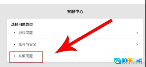 第一步,打开香肠派对游戏客服中心下方点击“充值问题”。
