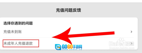 第二步,在充值问题反馈中点击“末成年人充值退款”并进入。