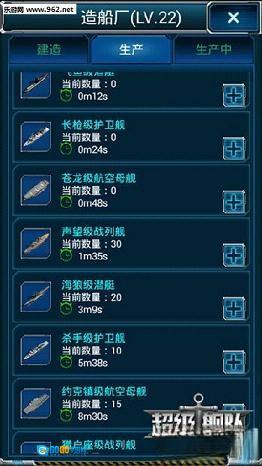 4、建议多建造航母,特别是新区刚开启时会有战力排行赢钻石的活动,此时把船厂升级到22级,接着持续建造航母,战力提升速度会比较快。