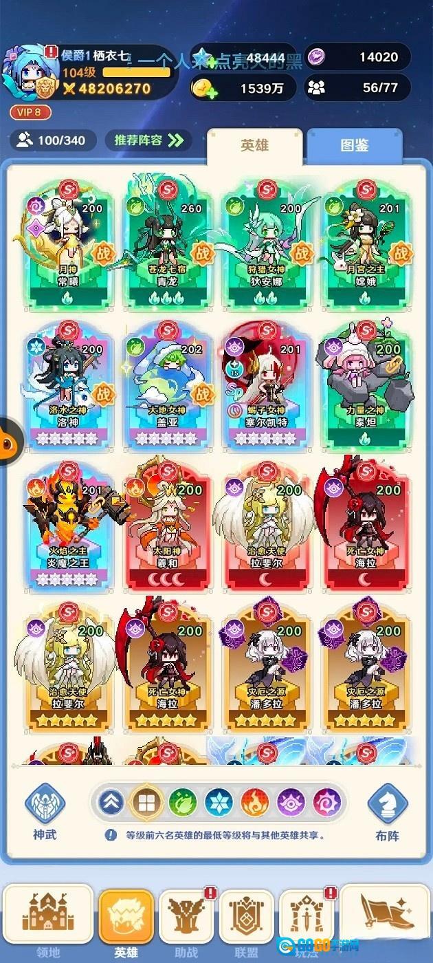3、接下来在英雄界面对上阵英雄进行升级和升星操作