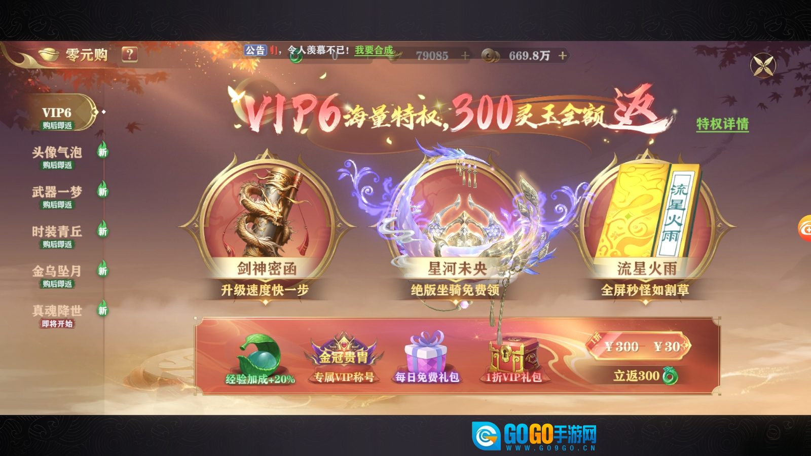 想要快速升级,参与剑神试炼、击败首领,完成江湖任务。参与首充、零元购获得剑神密函,剑神试炼次数+1!