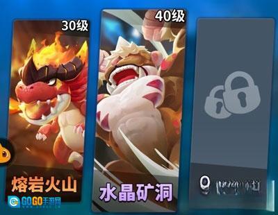 3、场景:熔岩火山(30级开启)、水晶矿洞(40级开启)、(50级开启)