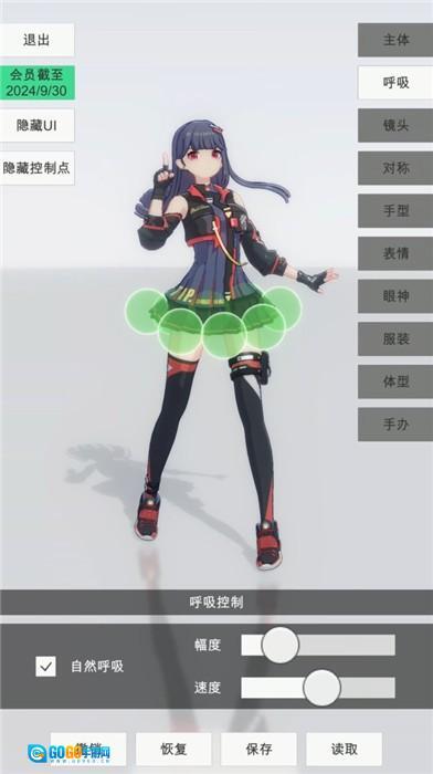2、选择呼吸选项后,玩家能够调节手办模特动态呼吸效果的展现幅度。