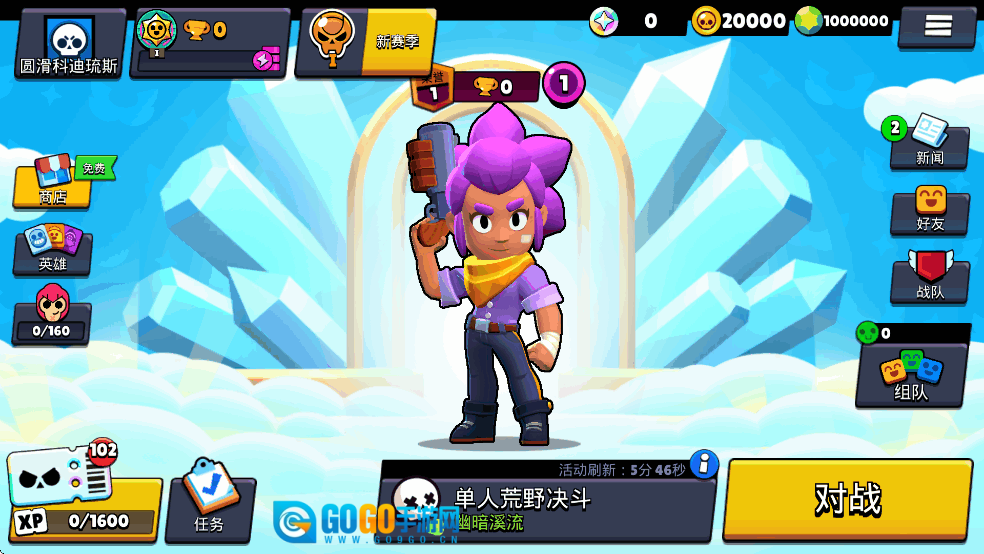 - 荒野决斗(单人/双人):这是一场擂台对决,目标是战斗到最后一刻。在过程中收集能量块可以让英雄变得更强。你可以选择和好友组队并肩作战,也可以独自闯荡,在紧张刺激的战斗里存活到最后!最终的胜利者就是王者!