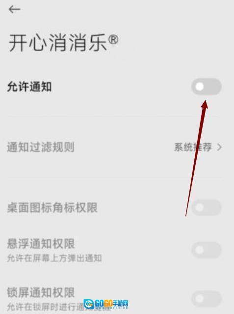 4.进入消消乐的通知设置界面,关闭“允许通知”功能,就能开启免打扰模式,具体操作可参考下图。