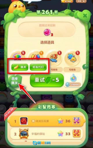 2、失败之后左边会出现【直接跳关】选项,这时候我们点击【好友代打】即可。