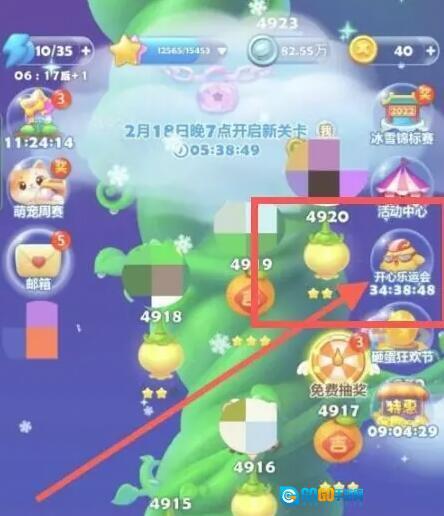 1、打开开心消消乐,点击首页的开心乐运会活动。