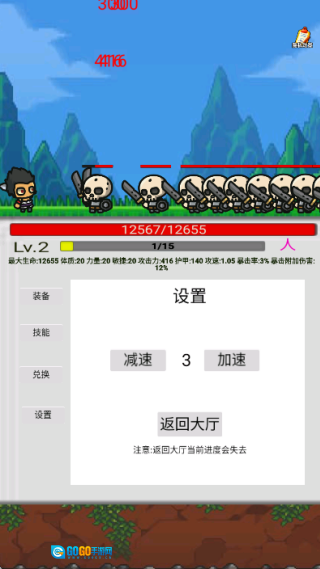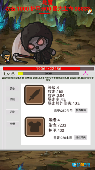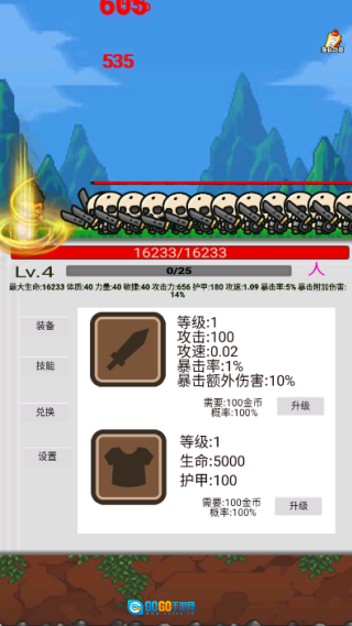 2. 英雄会自动攻击出现的怪物,玩家需要消耗资源,合理升级英雄的武器装备与属性等。