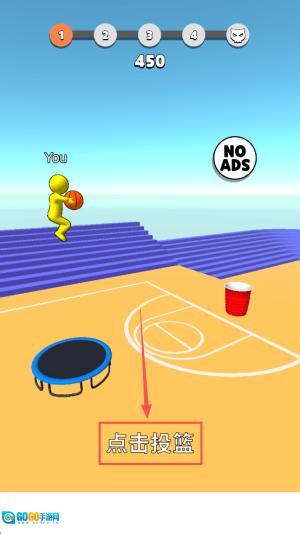 1. 熟悉基础操作:学会通过滑动来控制小人移动(确定蹦床的落点位置)以及完成出手投篮的基础交互方式,清晰了解“精准投进篮筐”这一核心目标。