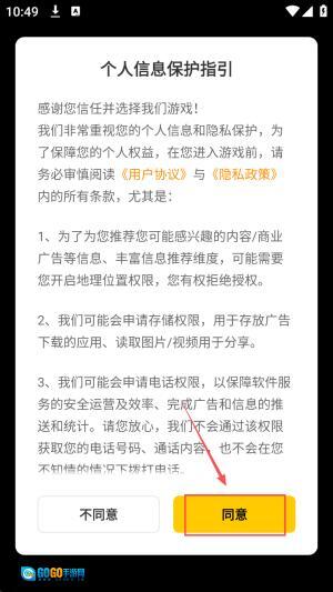 1. 启动与同意:打开游戏主界面后,点击“同意”按钮以接受个人信息保护指引,之后即可进入游戏主菜单。