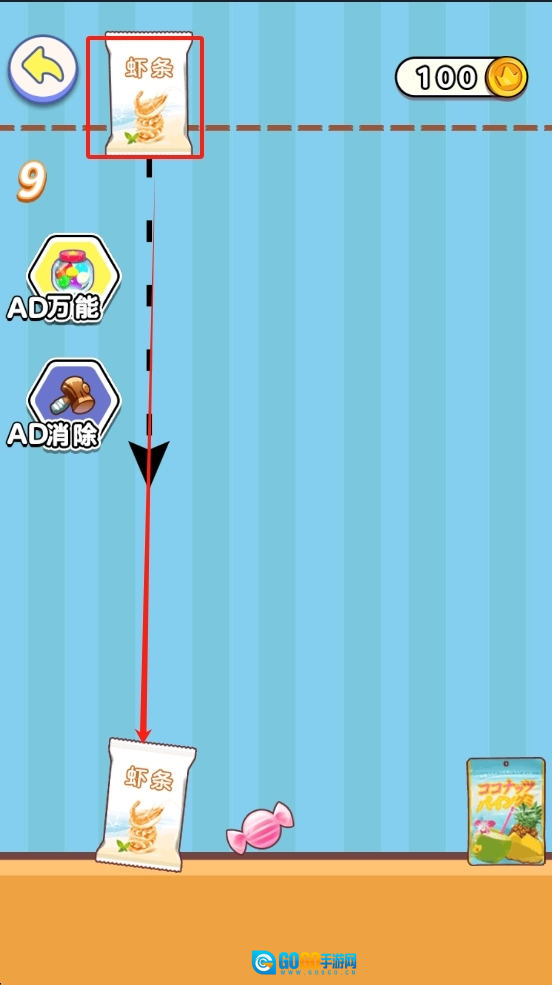 4、最后,拖动屏幕上的“虾条”图标,使其与下面图标对应。