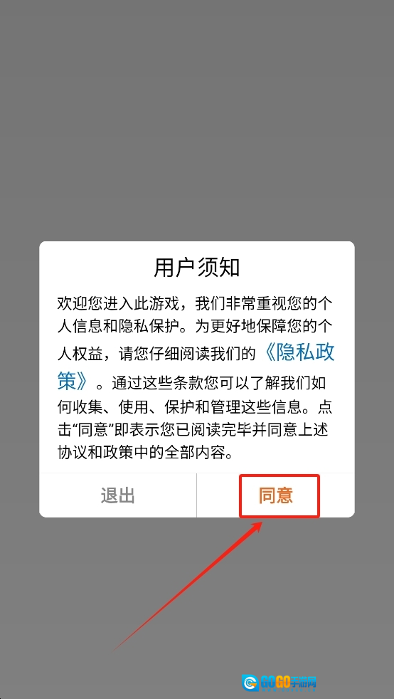 1、首先,阅读并同意用户须知,点击“同意”按钮以继续游戏。