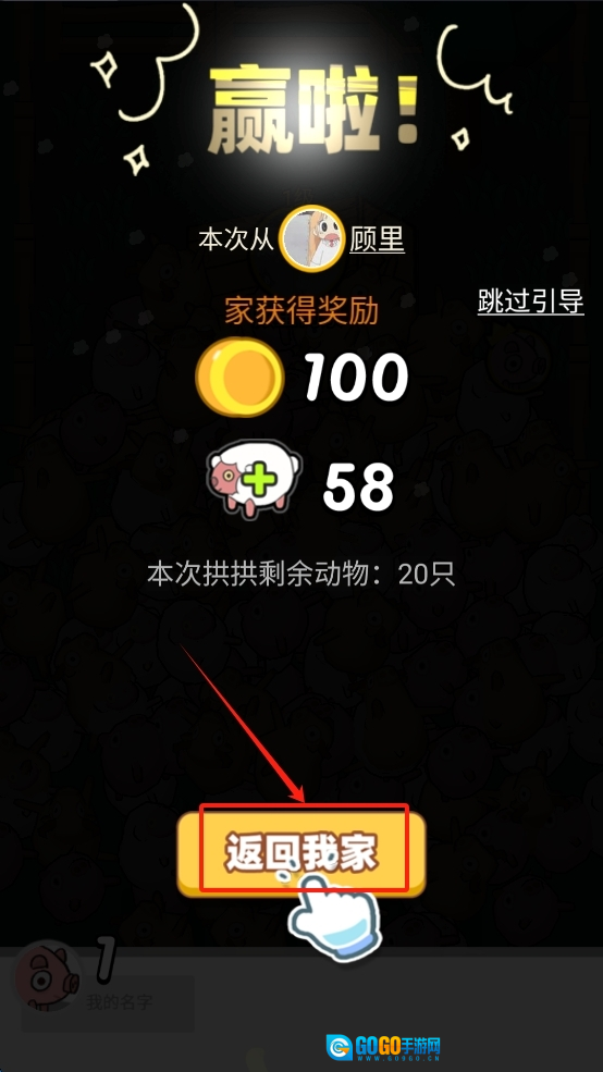 3、点击“返回我家”按钮领取奖励并返回主界面。