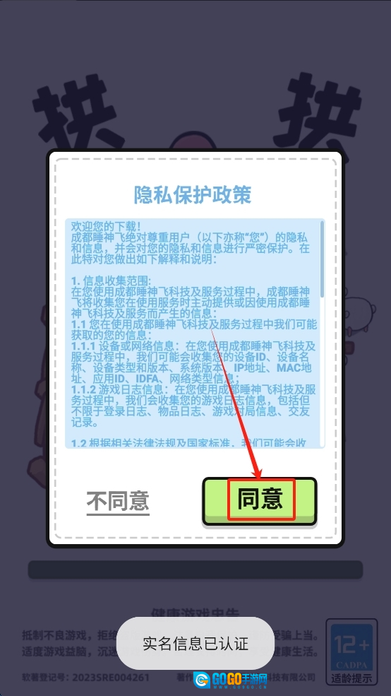 1、点击“同意”按钮以继续游戏。