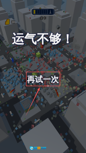 4、再次挑战:当画面显示“运气不够!再试一次”,点击该按钮,立即重新开始新一轮清除。