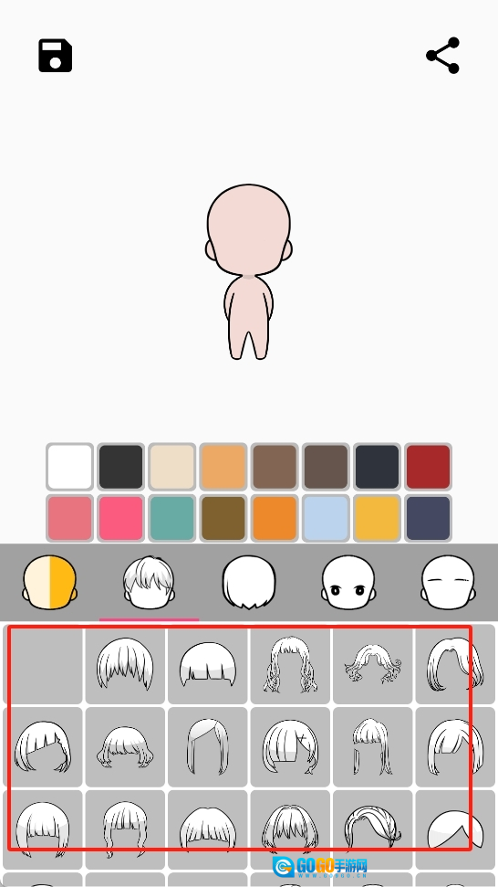 2、选择元素:玩家可以自由选择肤色、脸型、发型、五官,搭配服装和装饰品。