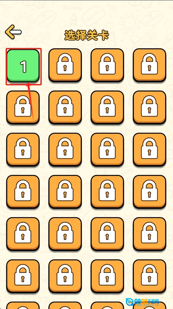 2、选择关卡,“1”进入第一关。
