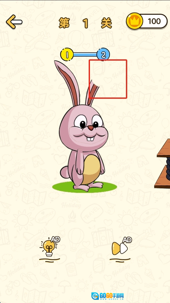 3、观察兔子头上的耳朵,画出相应的图形完成关卡。