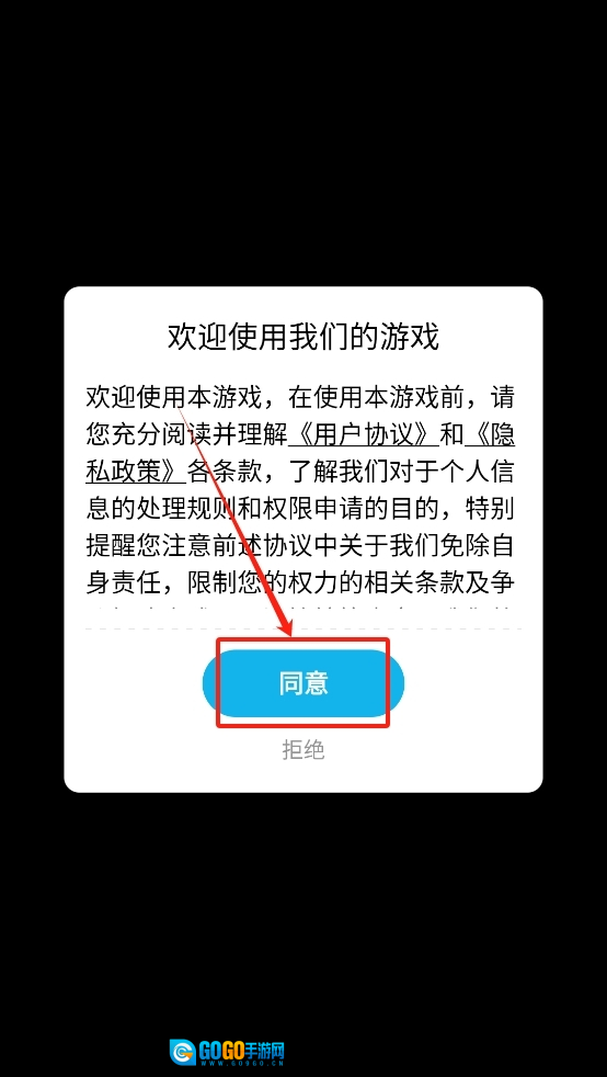 1、阅读并同意《用户协议》和《隐私政策》开始游戏。
